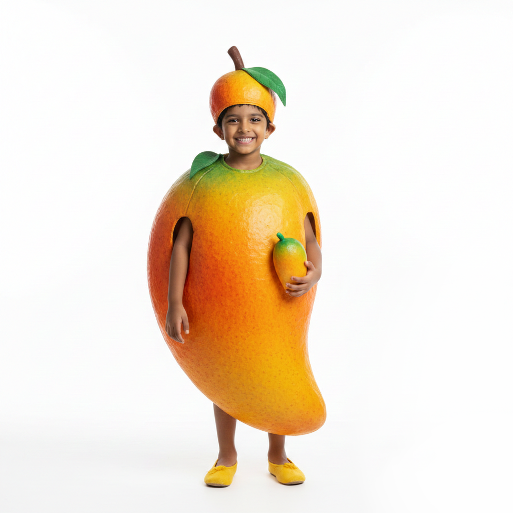 Turn healthy and fun with fruit fancy dress outfits! Popular choices include apple, banana, orange, mango, watermelon, pineapple, strawberry, and grapes costumes for kids.